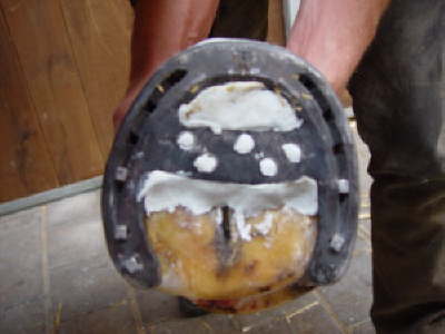 Umgekehrtes Eisen mit Abstützung über den Strahl bei Hufrehe