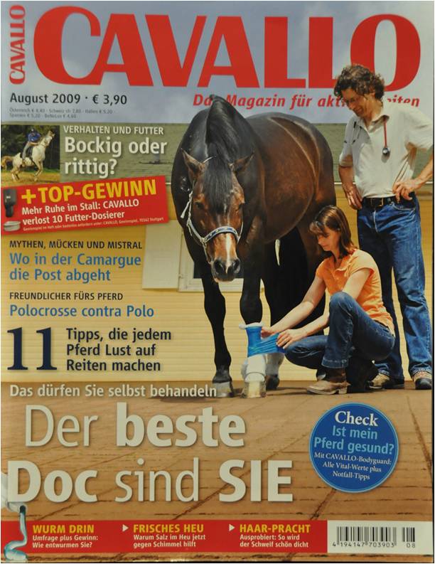 Die Anleitung zur Bestimmung der “Vitalwerte” - gemeint sind damit Puls, Atmung, Temperatur etc. - basiert auf einem Artikel, zu dessen Mitthilfe mich die Zeitschrift Cavallo gebeten hatte. Die Überschrift “Der beste Doc sind Sie” ist eher irreführend, denn ein paar Zeilen und Bilder können wohl kaum gegen ein mehrjähriges Studium und individuelle Praxiserfahrung konkurrieren. Die Anleitungen und Hinweise können und sollen den Tierarzt nicht ersetzen, sondern Ihnen helfen, dem Tierarzt im Ernstfall möglichst konkrete Angaben über den Gesundheitszustand Ihres Pferds zu geben. Überschätzen Sie Ihr Urteilsvermögen nicht: Auch wenn Sie geübt haben, sind Sie kein Tierarzt und Sie sollten vorsichtig sein konkrete Diagnosen zu stellen.