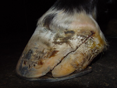 Hornspalt durchgehend und am Kronsaum blutend
